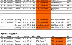 Jugend: A - Jugend: 4:0 gewonnen, damit für die Kreilsiga A qualifiziert!!! B - Jugend: 0:7 verloren (am letzten Spieltag der Quali entscheidet sich ob A oder B Liga gespielt wird) D2: 0:7 verloren gg St Vit D2: 1:1 gg. Clarholz E 1: 2:11 verloren E 2: 8:5 gewonnen E 3: 1:1 F 1: 5:2 gewonnen F 2: 7