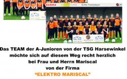Unsere A-Junioren durften sich kürzlich über eine großzügige Spende der Fa. Elektro Mariscal aus Harsewinkel freuen. Das TEAM konnte durch die Unterstützung von Frau und Herrn Mariscal mit neuen Trikots und Polo-Shirts für die neue Saison 2015/2016 ausgestattet werden. Neben dem Trainerstab Thomas