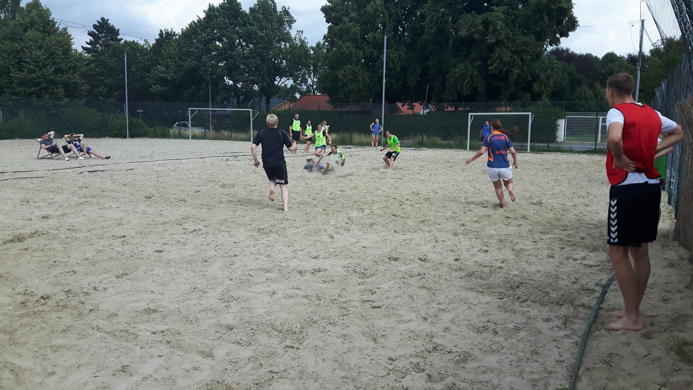 Danach trafen wir uns mit der 2. Damen Mannschaft um am Goal- As- Soccer- Center gemeinsam Beachhandball zu zocken. Für viele war dies noch „Neuland“ doch der Spaßfaktor war sichtlich vorhanden. In gemischten Teams wurde sich nichts geschenkt und alle hatten ihre Freude- auch wenn der Sand zwischen den Zähnen knirschte.