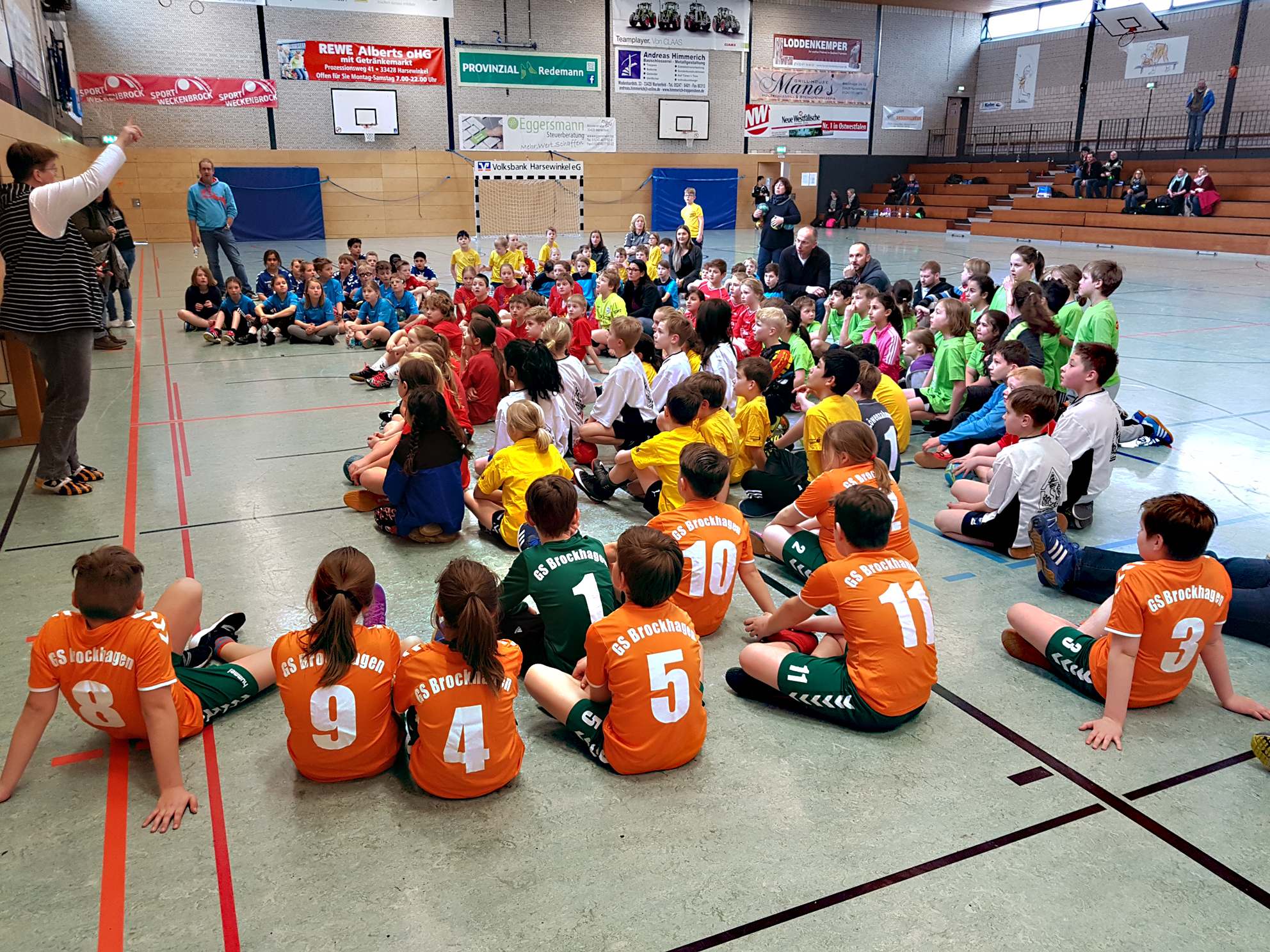 Einmal im Jahr veranstaltet das Schulamt des Kreises Gütersloh unter der Federführung von Christiane Offel ein Spielfest der Grundschulen. Seit Jahren findet es, betreut von der Handballabteilung, in Harsewinkel statt. Rund 230 Kinder von 12 Grundschulen eingeteilt in 15 Mannschaften spielten in beiden Hallen 24 Spiele. Gespielt wird nach E-Jugend-Regeln und am Ende bekamen alle eine Medaille und etwas Süßes, jede Mannschaft erhielt einen Handball. Die Cafeteria betreuten Birgit Feismann, Astrid Nordgerling, Susanne Schön, Wally Runge, Birgit Kulka, Sabine Temme und Monika Uphus. Neben tollen Kuchen, Brezeln, Süßigkeiten gab es jede Menge Waffeln. Die Spiele wurden geleitet von André Hallmann, Jonas Feismann und Engin Brokamp. Am Zeitnehmertisch saßen Josef Raubart und Manfred Baedeker. Alles in allem eine sehr gelungene Veranstaltung, die besonders den Aktiven sehr gefallen hat.