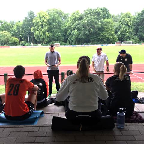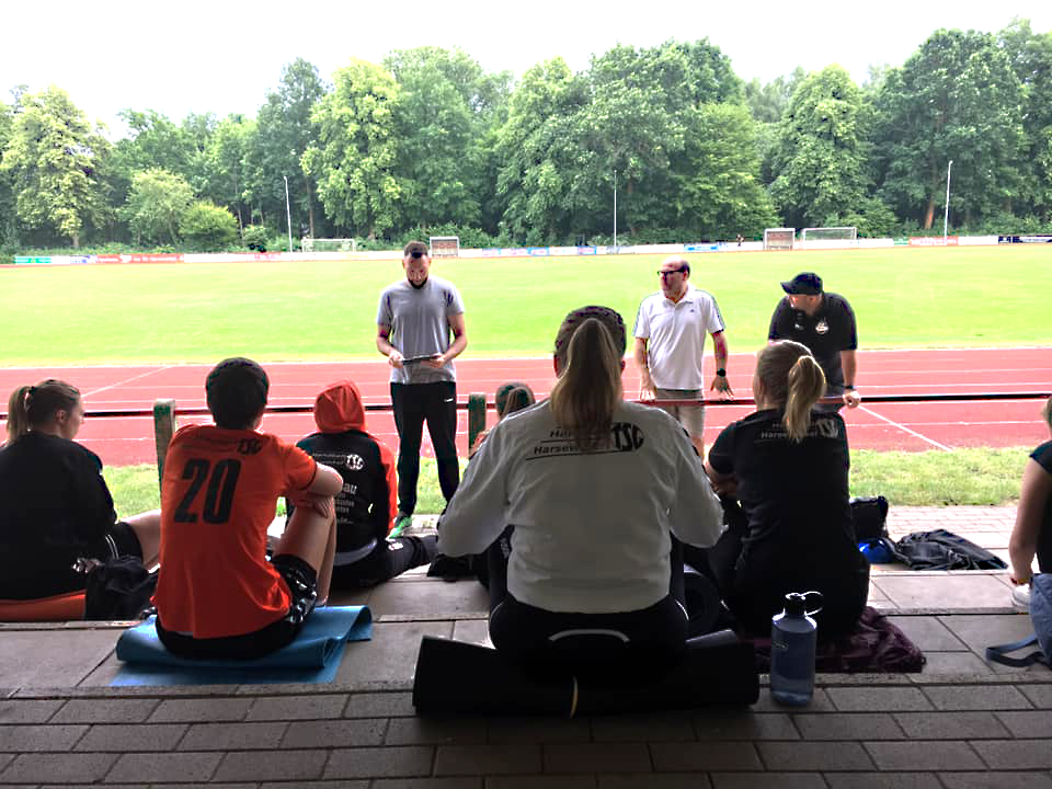 Endlich! Nach über sehr langen 12 Wochen sind wir alle wieder zusammengekommen Leider noch nicht in unserem geliebten Hasenbau, denn der Coach lud um Punkt 19 Uhr zu Lauf- und vor allem Kräftigungsübungen ins Moddenbachstadion.