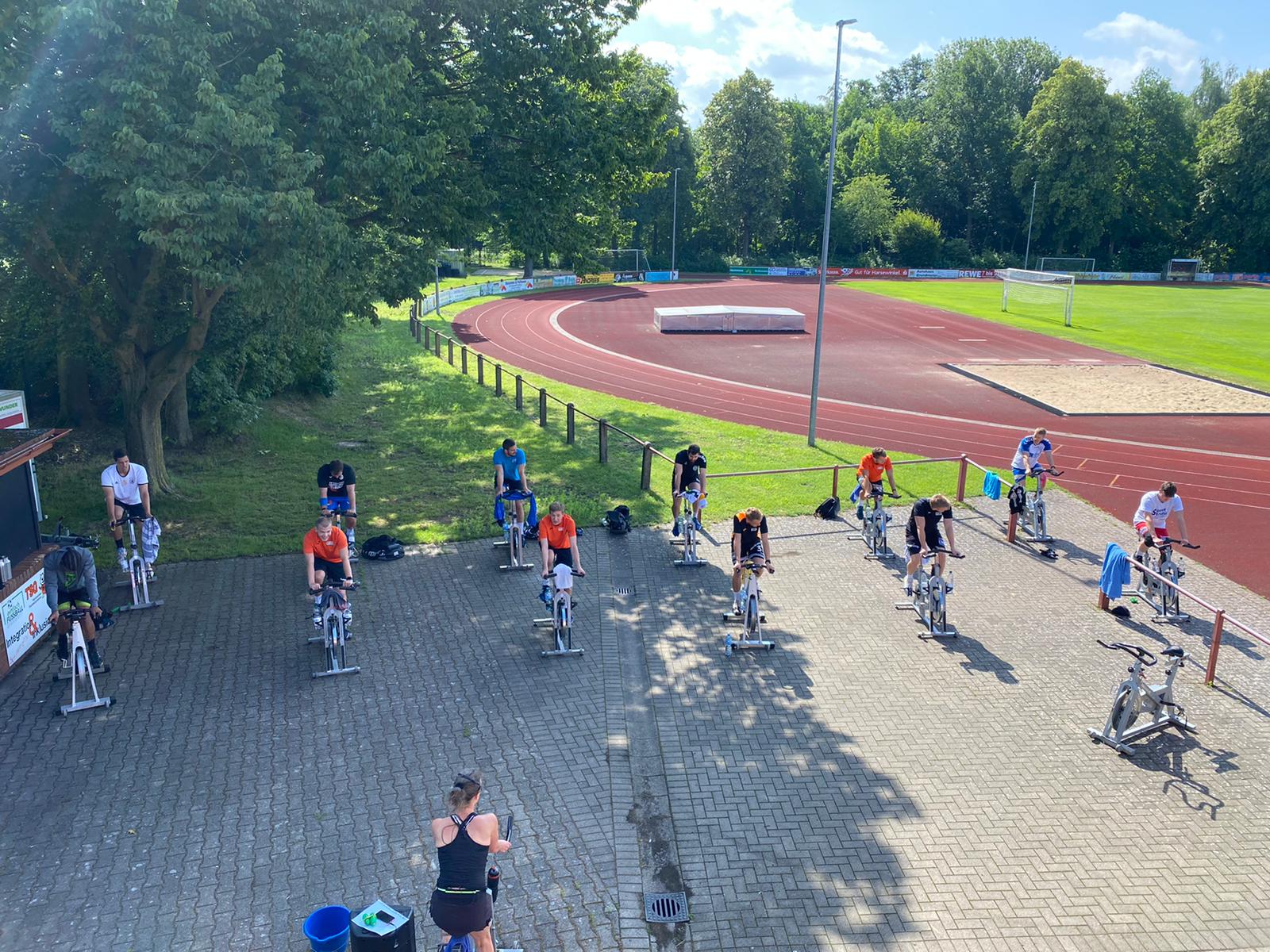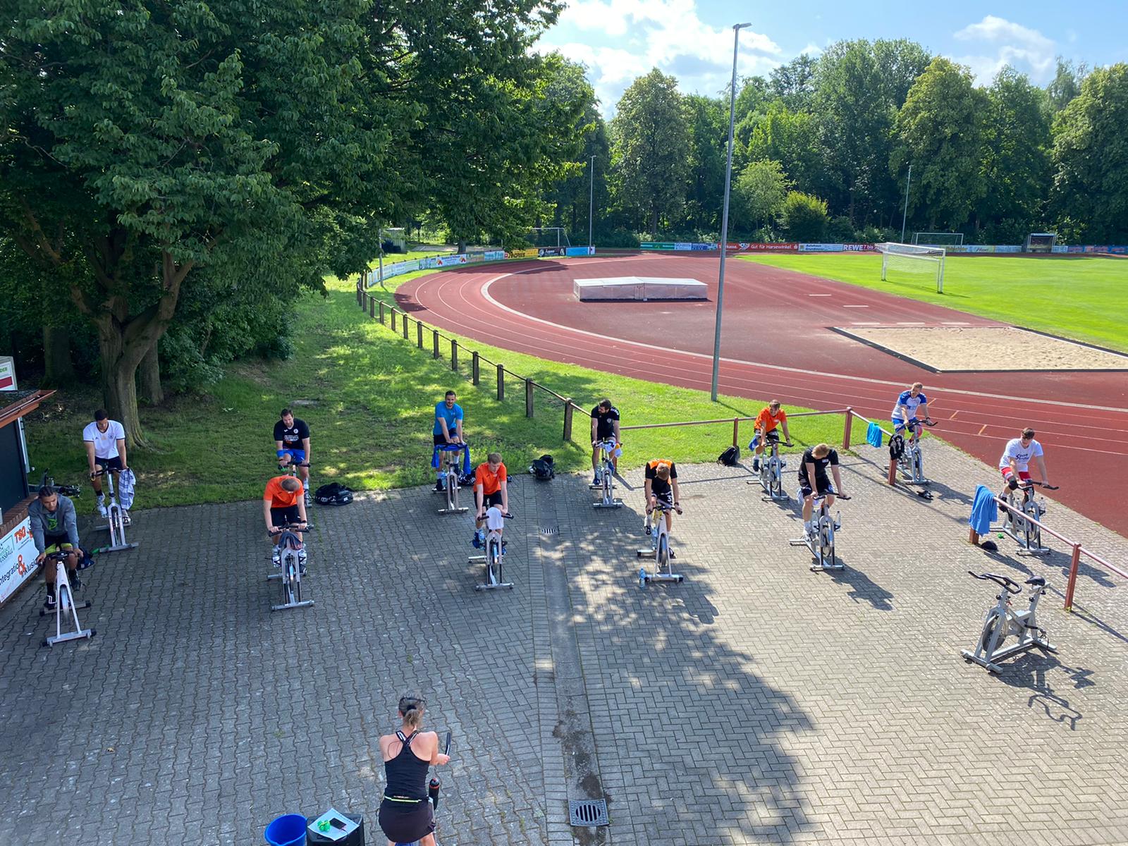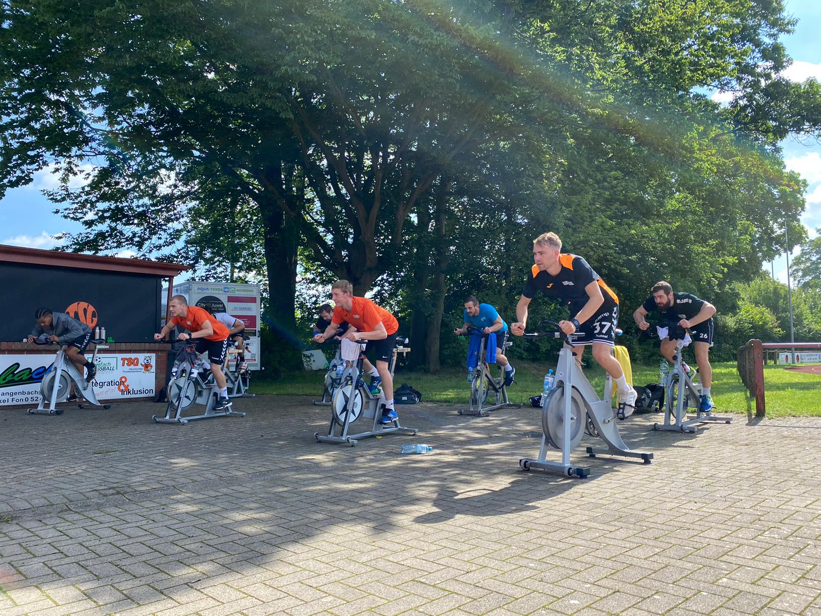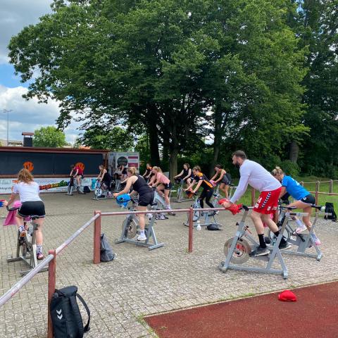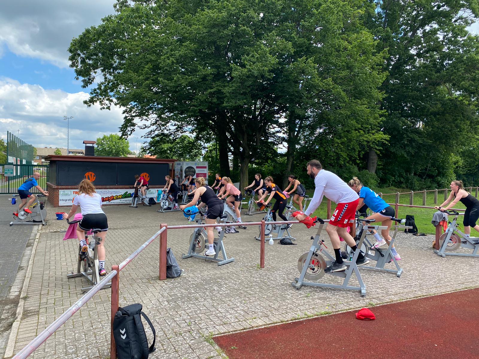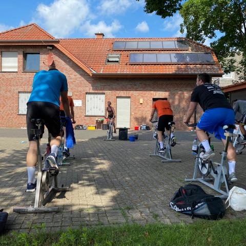 Ein Training der besonderen Art absolvierten die 1. Damen und 1. Herren Spinning im Freien Chrissi und Venti gaben ihr Bestes damit alle gehörig ins Schwitzen kamen /div>
