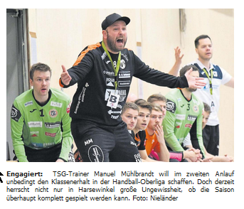 Der Vergleich mit Mitaufsteiger VfL Eintracht Hagen II am Samstag in eigener Halle (Anpfiff 19 Uhr) ist für Handball-Oberligist TSG Harsewinkel kein normales Spiel. „Es war in der Vorbereitung sehr schwer, die Konzentration aufrechtzuerhalten“, berichtet Trainer Manuel Mühlbrandt. „Die Jungs haben natürlich immer wieder gezweifelt, ob denn wirklich gespielt wird.“