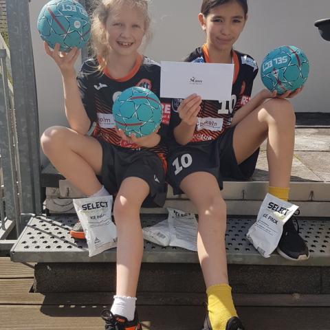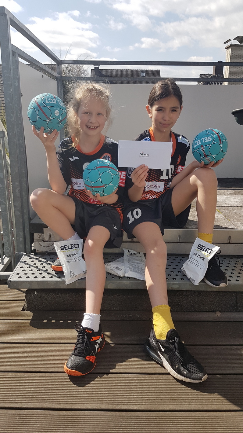 Stellvertretend für unsere E-Jugend haben Madina und Melia das Paket geöffnet und ausgepackt. Sie bedanken sich im Namen aller E-Jugendlichen für die drei Handbälle sowie für die Kühlpacks und hoffen, wie viele andere auch, dass das Handballtraining bald wieder los geht.