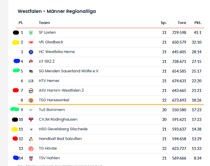 Interessant für uns sind die Paarungen mit Mannschaften, die derzeit unter uns in der Tabelle stehen.