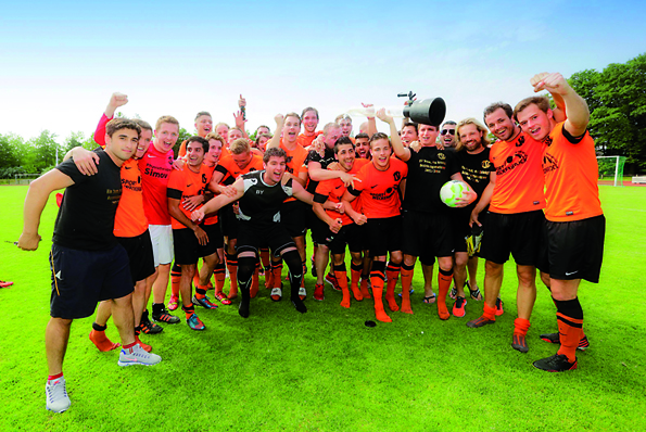 Grund zum Jubeln hat die 1. Mannschaft der TSG-Fußballer. Der Aufstieg in die Landesliga ist geschafft. Herzlichen Glückwunsch. /div>