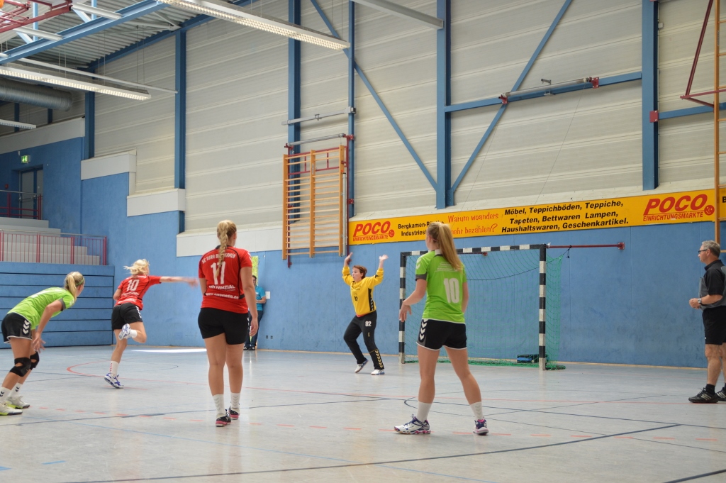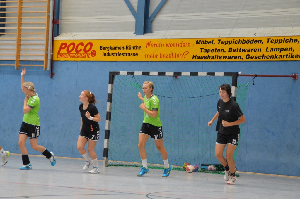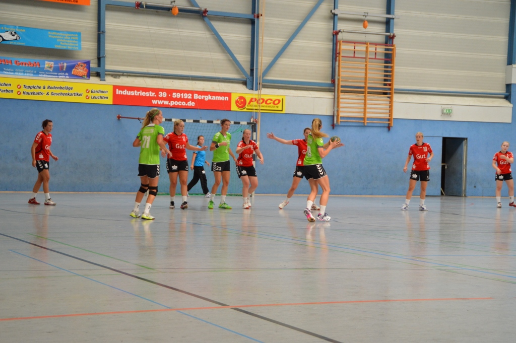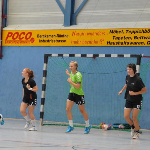 Am 3.8. waren wir beim Oberligisten Oerlinghausen zu Gast. Wir spielen dort eine gute 1. Halbzeit und gehen mit einem Unentschieden in die Halbzeitpause. Anschließend unterlaufen uns zu viele Fehler, die die Oberliga-Damen gut ausnutzen und wir verlieren die Partie dann doch noch mit 7 Toren. Am 9.8. (Samstag) haben wir ebenso wie die 1. Herren der TSG den Weg nach Bergkamen (siehe Fotos) angetreten. Zufriedenstellender Weise haben wir dort den Oberligisten an den Rand einer Niederlage gedrängt und beenden nach vielen positiven Eindrücken und einer gewonnenen zweiten Halbzeit das Spiel nur mit einer 3-Tore-Niederlage (27:30). Alleine der Vergleich des gefühlten Siegs zur 15-Tore-Niederlage gegen diese Truppe vor einem Jahr zeigt, dass wir auf dem richtigen Weg sind. Gestern (10.8.) empfingen wir Altenhagen-Heepen aus der anderen Landesliga.Staffel in Greffen und absolvierten trotz zu vieler technischer Fehler und Unzufriedenheiten im eigenen Spiel mit 27:18 einen klaren Sieg. Nun genießen wir den trainingsfreien Start der Woche, bevor wir Mittwoch das Sportabzeichen ablegen, Freitag trainieren und Samstag in das schon oben erwähnte Turnier starten.