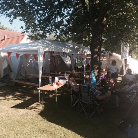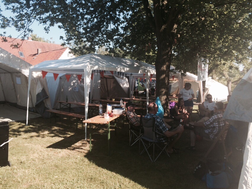 Das Aufbauteam hat ganze Arbeit geleistet :-) Zelte stehen, das Bier ist kalt - der Grill allerdings auch noch. Morgenfrüh kommen die Mannschaften und dann geht es richtig los. /div>