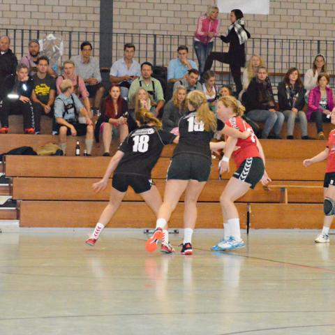 Trotz tatkräftiger Unterstützung der zahlreichen Zuschauer im zünftigen Oktoberfest-Outfit haben die 2. Damen gegen Schröttinghausen-Babenhausen nicht gewonnen. Nach 60 Minuten hieß es leider 19 : 26. /div>