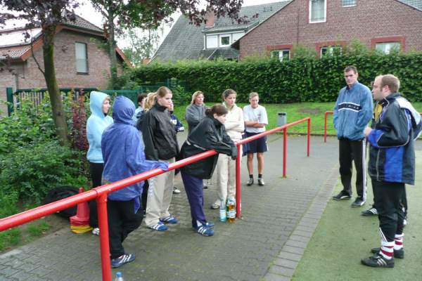 Am Mittwoch 4. Juli bekam der Kunstrasenplatz ungewohnten Besuch. Fast die gesamte 1. Damenmannschaft der Handballer - mit den Neuzugängen - absolvierte ein Fußballtraining. Holger - Fußballtrainer beim SV Benteler - freute sich über die große Zahl und die ernsthafte Beteiligung der Fußball Neulinge.
