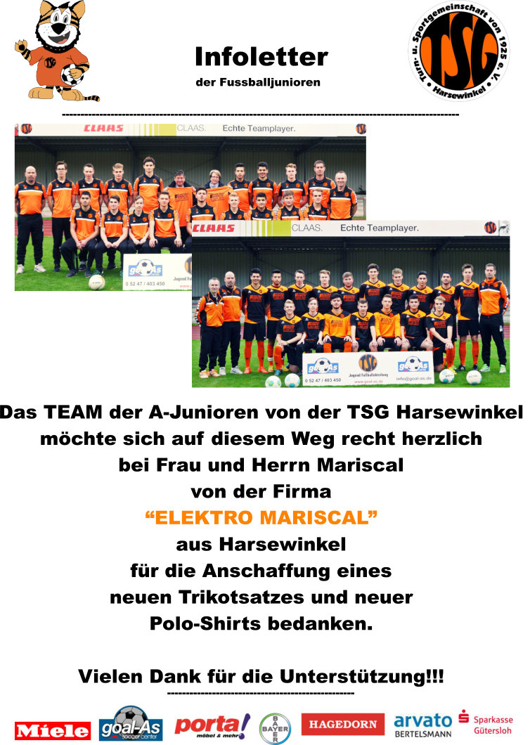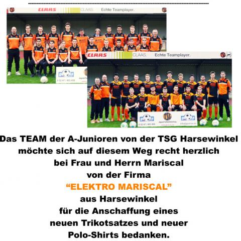 Unsere A-Junioren durften sich kürzlich über eine großzügige Spende der Fa. Elektro Mariscal aus Harsewinkel freuen.