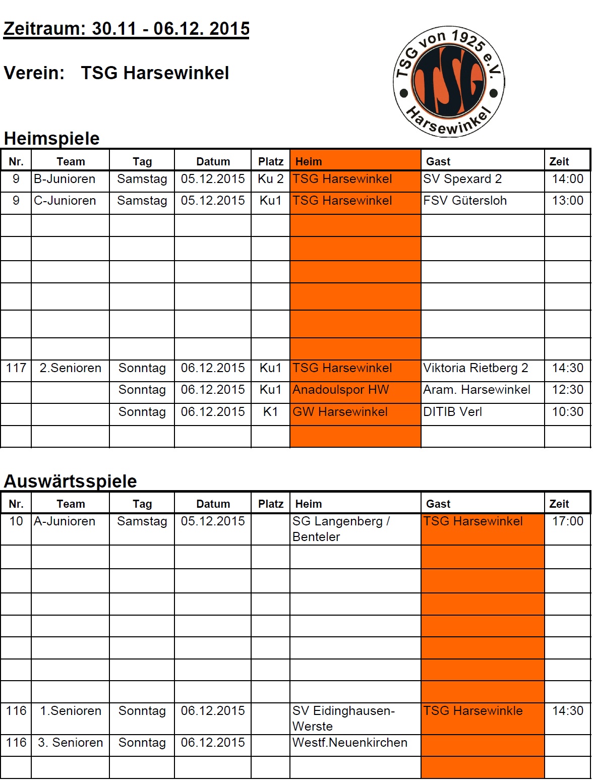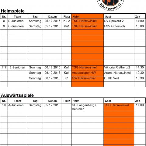 Folgende Spiele finden an diesem Wochenende statt.