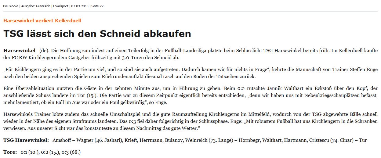 Glocke - Bericht zum Spiel der 1. gg. Kirchlengern