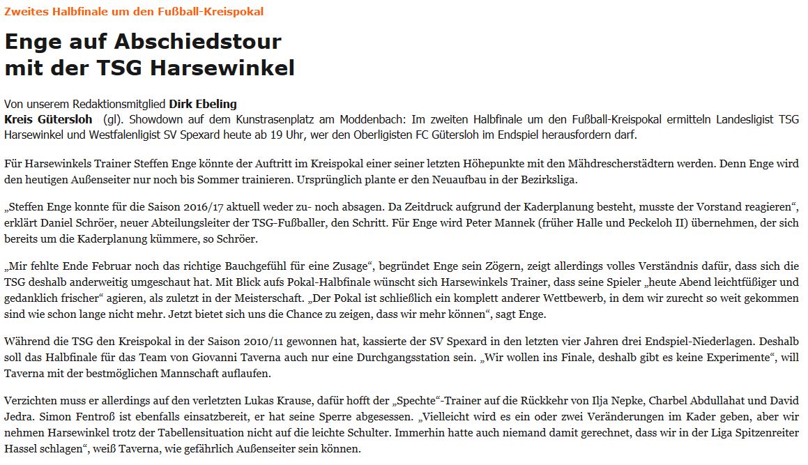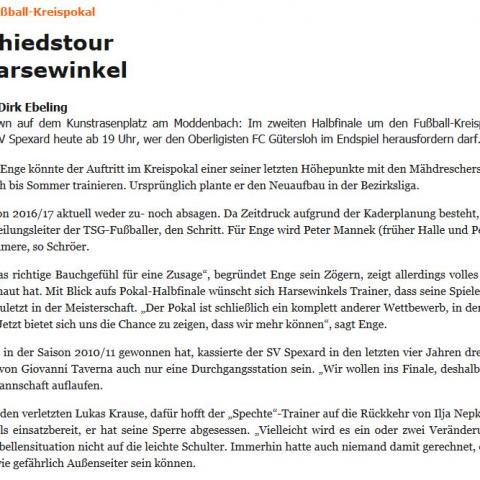 Glocke - Bericht zum heutigen Pokalspiel gegen SV Spexard um 19 Uhr im Moddenbachtal - Stadion