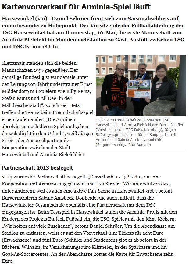 Glocke - Bericht zum Freundschaftsspiel TSG - Arminia Vorverkauf läuft!!!