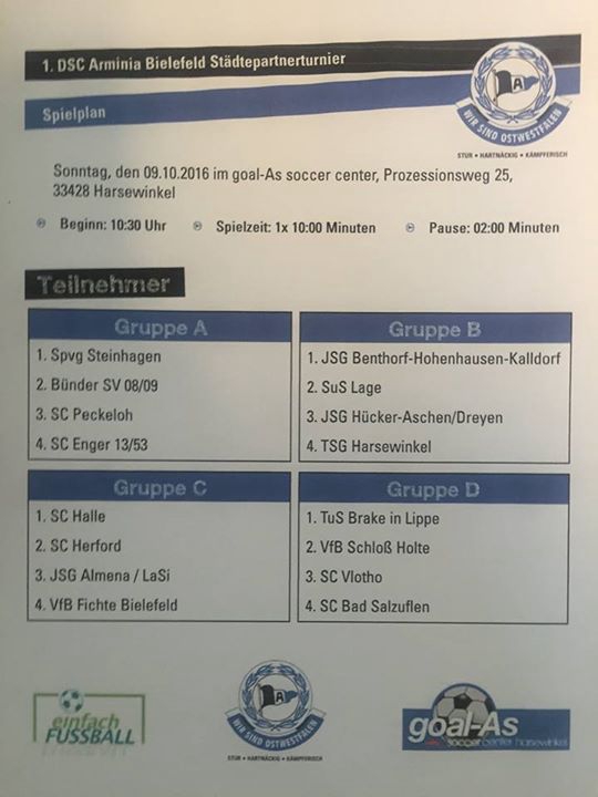 Beim heutigen Städtepartnerturnier vom DSC Arminia Bielefeld im goalAs Harsewinkel hat unsere E1 heute ohne Punktverlust das Turnier gewonnen.