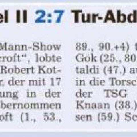 Unsere 2. kommt nach einer tollen 1. Halbzeit (1:2 und 2 Lattentreffer unserer Jungs) noch unter die Räder. Wobei das Ergebnis von 2:7 um einige Tore zu hoch ausfiel. /div>