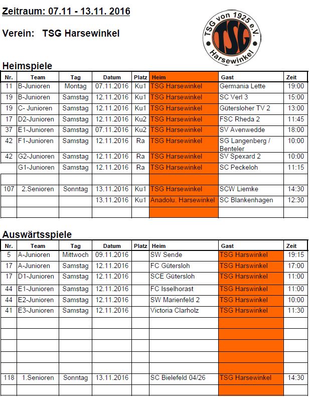 Spiele der kommenden Woche (07.11. - 13.11.)