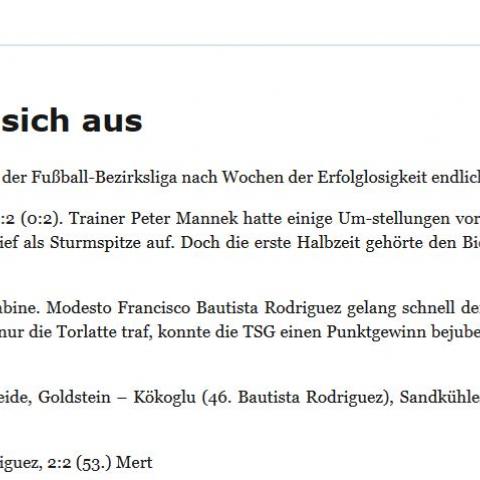 Ein erfolgreiches Wochenende für unsere 1. Unsere Jungs haben sich einen Punkt beim SC Bielefeld erkämpft und das trotz der Ausfälle und Ekrem Topal und Koray Kiremit. Dafür hat A - Jugendspieler Timo Goldstein 90 Minuten auf dem Platz gestanden und seine Sache super gemacht. Herzlichen Glückwunsch and die Jungs. Jetzt nachlegen, dann ist noch alles möglich...