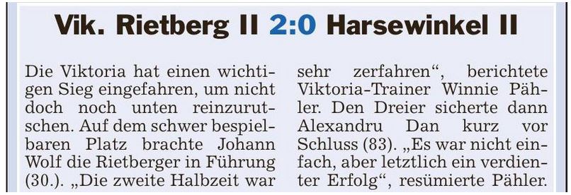 Glocke - Zeitungsbericht zum Spiel unserer 2.