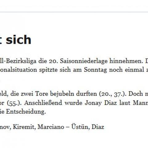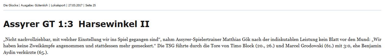Hier die Berichte über die Niederlage, trotz einer guten 2. Halbzeit, sowie den Sieg unserer 2. gegen den viertplatzierten Assyrer GT. /div>
