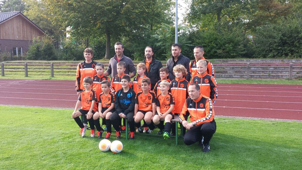 Die fußballbegeisterten Harsewinkeler Kinder aus dem Jahrgang 2010 und das Trainerteam um Frank Dieckmann, Anja Wiedemann und Manuel Magro bedanken sich bei den Sponsoren Nehir Cilgin, Inhaber des City Grills (Regenjacken), Manuel Yüksel von Mano's Grillhouse (Trainingsjacken) und Ibrahim Adigüzel, jedem bekannt aus der Pizzeria Mon Dial (Trikots), für die neue Ausstattung.