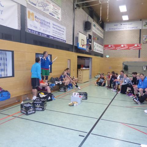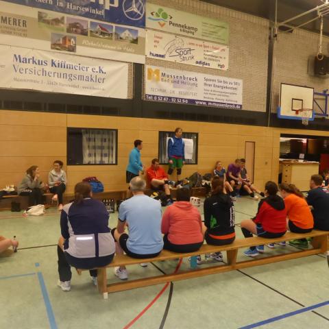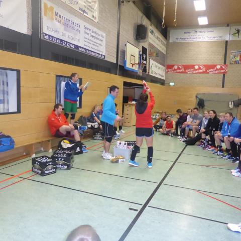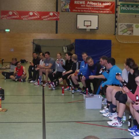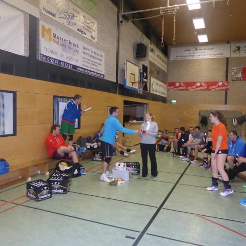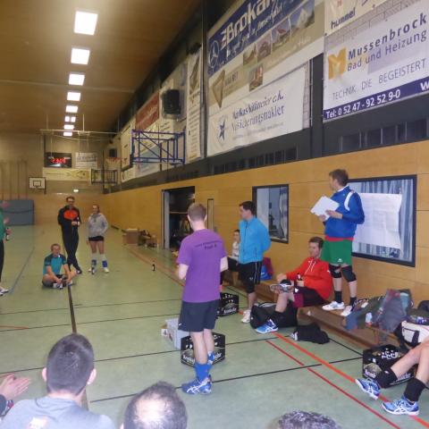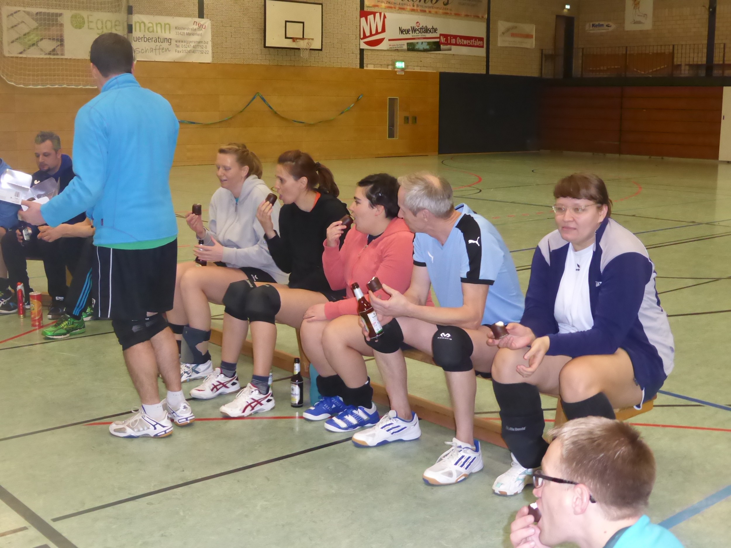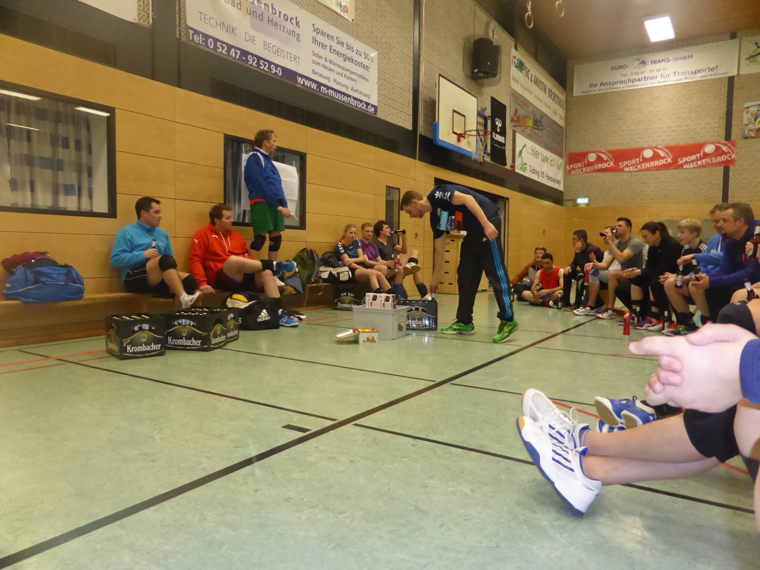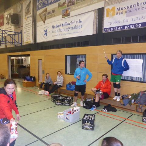 Zuerst wurden sechs weihnachtliche Teams ausgelost wie z. B. Christkinder oder Nikoläuse. Dann startete, nach kurzer Aufwärmphase, das Turnier. Jedes Team hatte fünf Spiele zu bestreiten, die jeweils zwei Sätze à 10 Minuten dauerten. Bei diesem schönen Weihnachtsturnier stand natürlich, wie in jedem Jahr, vor allen Dingen der Spaß im Vordergrund, auch wenn es leider einen Verletzten gab. Auf diesem Wege ganz viele Genesungswünsche.