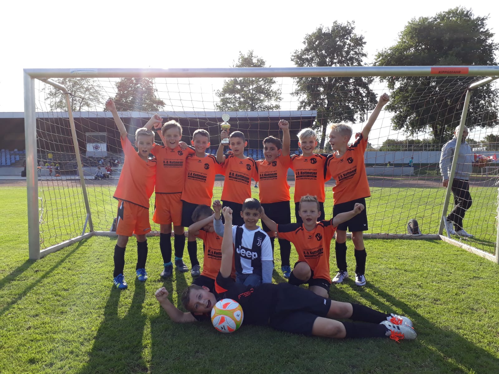 Mit einem Turniersieg startete unsere E2 am gestrigen Samstag in die neue Spielzeit. Das die Jungs 6 Wochen Sommer Pause hatten, merkte man ihnen gar nicht an. Mit einem Torverhältnis von 14:1 war der Turniersieg zu keiner Zeit gefährdet. Die einzige größere Hürde wartete mit dem SC Peckeloh im Halbfinale. Diese wurden in einem ansehnlichem Spiel mit 1:0 geschlagen.