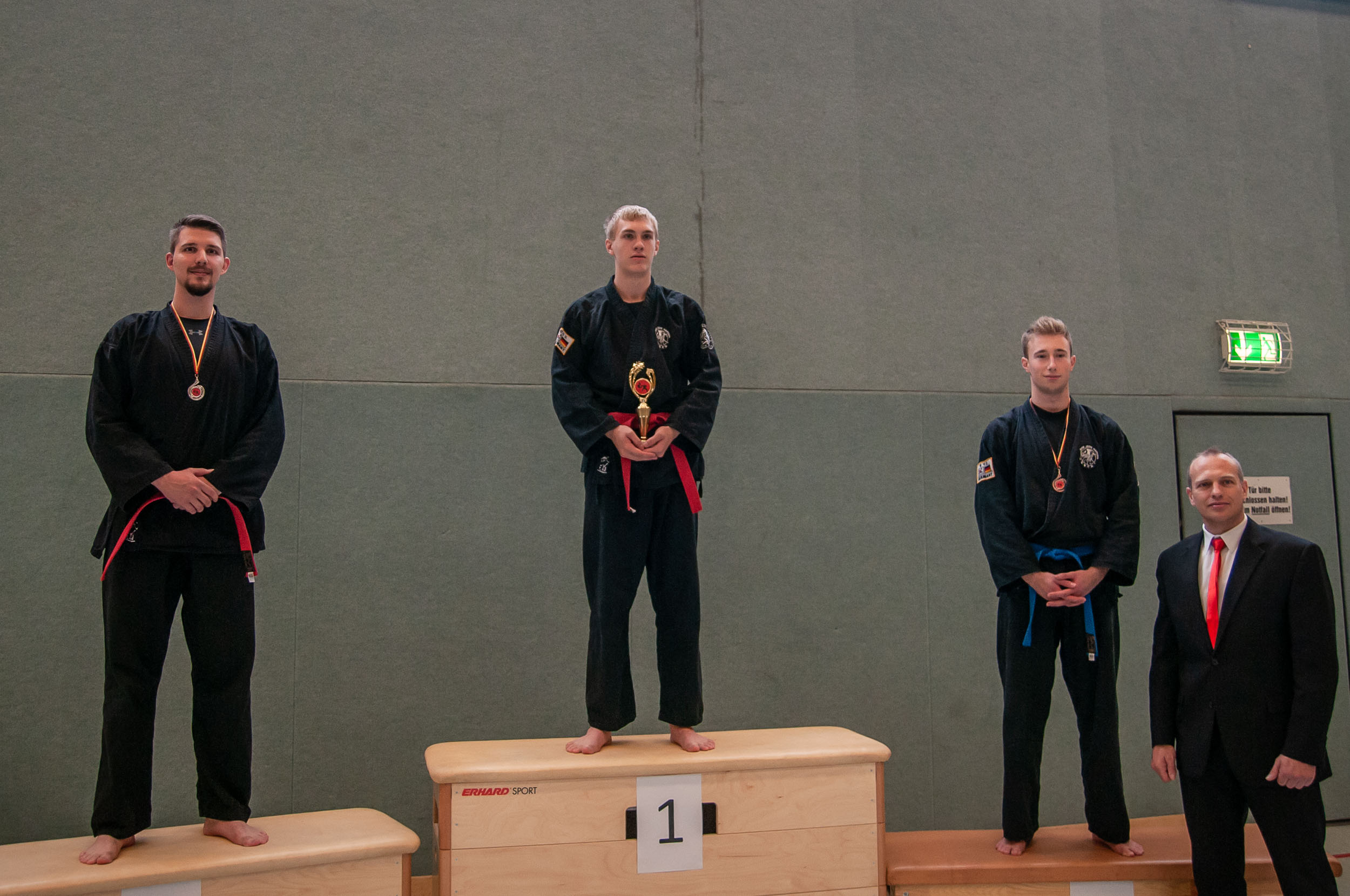 Bei der Siegerehrung erhielt Nils Schürer als deutscher Vizemeister der Selbstverteidigung (Erwachsene, männlich) eine Ehrenmedaille.