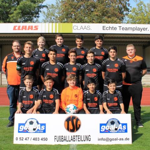 Die C2-Jugend der TSG Harsewinkel freut sich über einen neuen Trikotsatz, in dem von jetzt an die Meisterschaftsspiele bestritten werden können.