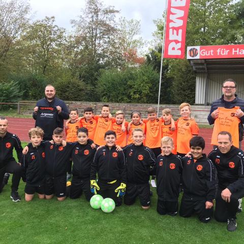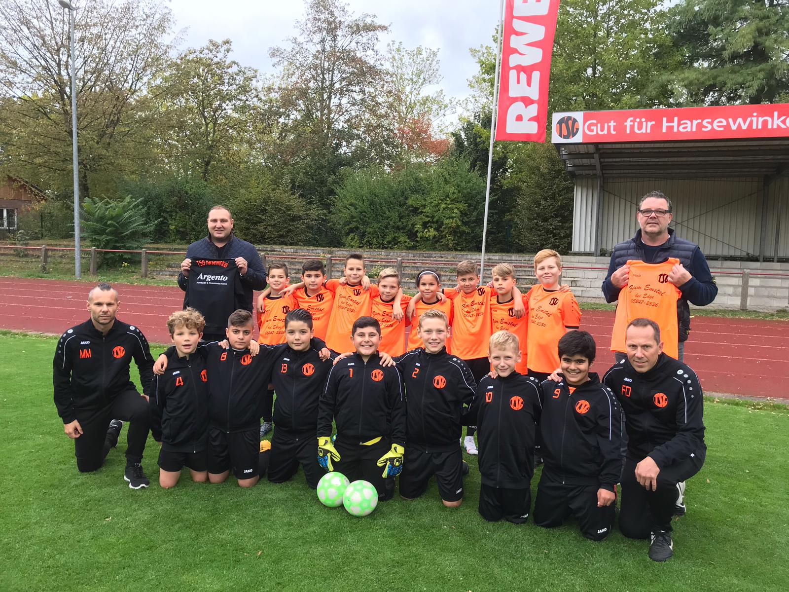 Die Fußball begeisterten Jungs und das Trainerteam um Frank Dieckmann und Manuel Magro bedanken sich für die neue Ausrüstung bei den Sponsoren Simon Gündüz, Inhaber des „Juwelier & Trauringstudio Argento“ (Trainingsjacken) sowie Edgar Heitmann, jedem bekannt aus der Gaststätte / Restaurant „Zum Emstal bei Edge“ (Trikots).