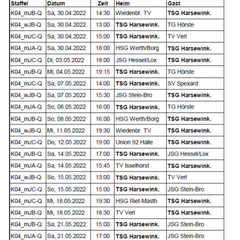 wJB  Sa, 30.04.2022  13:00  TSG Harsewinkel vs TG Hörste