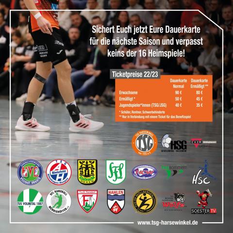 Wer sich ein Ticket für das Benefizspiel am 23.07.2022 gegen TBV Lemgo Lippe kauft (Vorverkauf läuft aktuell bei JFK Optik und in der Vielfalt), hat beim Spiel die Möglichkeit eine vergünstigte Dauerkarte zu erwerben!
