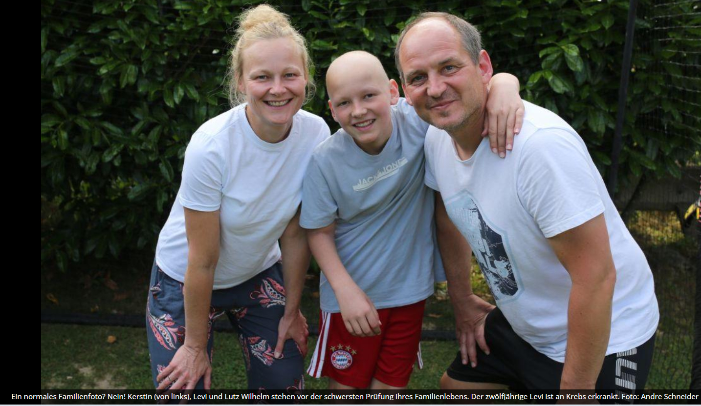 Denn bei nur zwei von 100.000 Menschen wird diese Diagnose gestellt, weiß Vater Lutz. Meistens entsteht der Knochenkrebs im Wachstum zwischen zwölf und 15 Jahren. „Wir hatten vorher nie Berührungspunkte mit Krebs“, sagt Kerstin Wilhelm. Jetzt trifft die schwere Krankheit die vierköpfige Familie, zu der noch der neunjährige Milo gehört, heftig. „Familienleben gibt es bei uns eigentlich nur zwischen Tür und Angel“, meint Lutz. „Ich bin mehr im Krankenhaus als zu Hause“, bestätigt Levi. Und sein Vater ergänzt: „Manchmal komme ich abends nach Hause und weiß gar nicht, was ich geschafft habe, obwohl ich eigentlich eine Menge gemacht habe.“