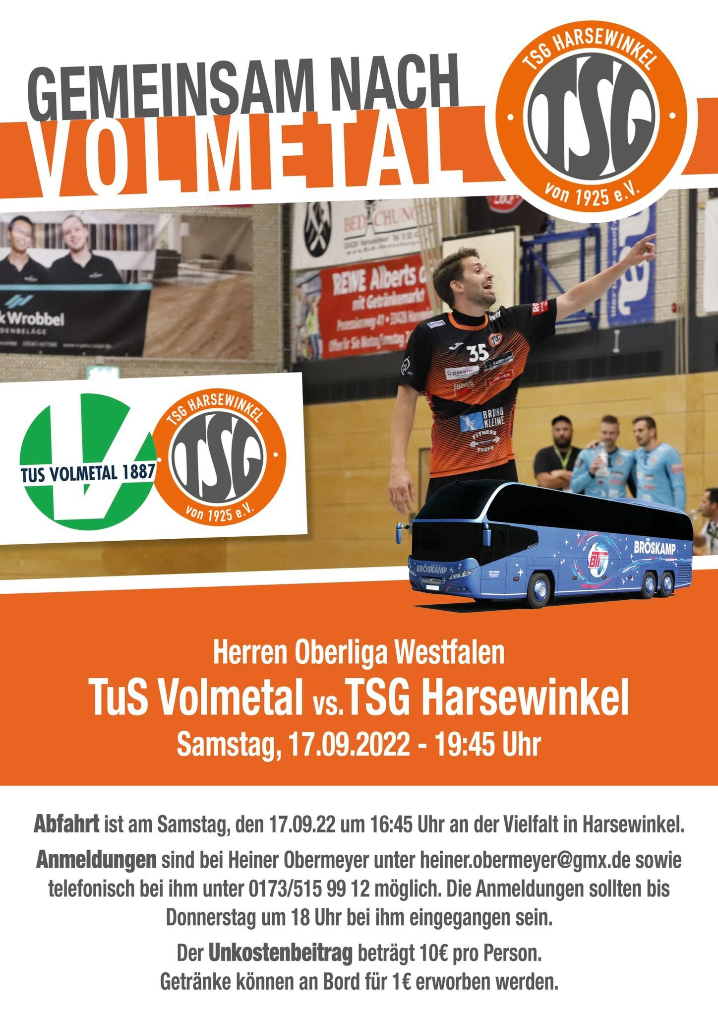 Zum nächsten Auswärtsspiel am Samstag 17. September gegen den TuS Volmetal fährt wieder ein Bus.