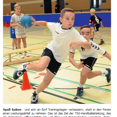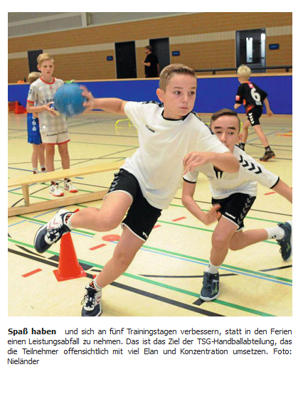 Um das Niveau im Kinder- und Jugendbereich weiter zu verbessern, hat die Handballabteilung der TSG Harsewinkel in den Herbstferien erstmalig ein Handball-Camp ausgerichtet. Den Anfang machten die Jungen und Mädchen der E- und D-Jugend. In der zweiten Ferienwoche feilen nun die C- und B-Jugendlichen fünf Tage lang an ihrer Fitness, Ausdauer, Koordination, Taktik und und ihrem Spielverständnis. „Wir haben festgestellt, dass uns nach den Herbstferien immer die Teams weggezogen sind, die bereits solche Handball-Camps anbieten.