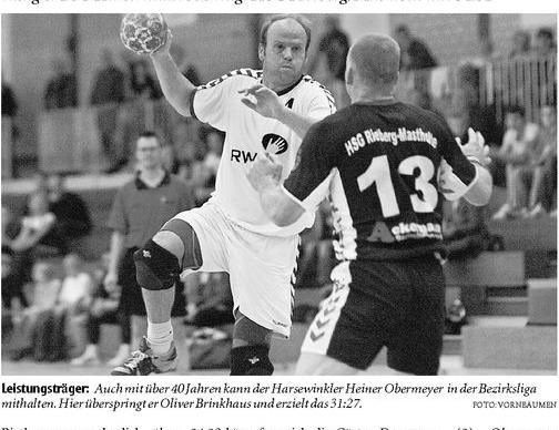 HANDBALL: Obermeyer führt forsche Gastgeber zum Sieg - Bezirksligist TSG Harsewinkel bezwingt HSG Rietberg/Mastholte mit 34:32