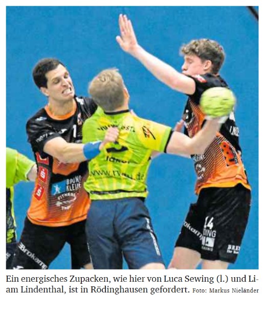 Zumindest bei den zuletzt durch Erkältung geschwächten Harsewinkeler Spielern ist ein Aufwärtstrend erkennbar („Der Tank füllt sich“), lediglich Luke Steinkamp (Mandelentzündung) muss definitiv passen. „Rödinghausen ist natürlich haushoher Favorit, sie sind mega eingespielt. Wir brauchen am Sonntag Typen, um bei dieser schwierigen Aufgabe gut auszusehen“, sagt Manuel Mühlbrandt.