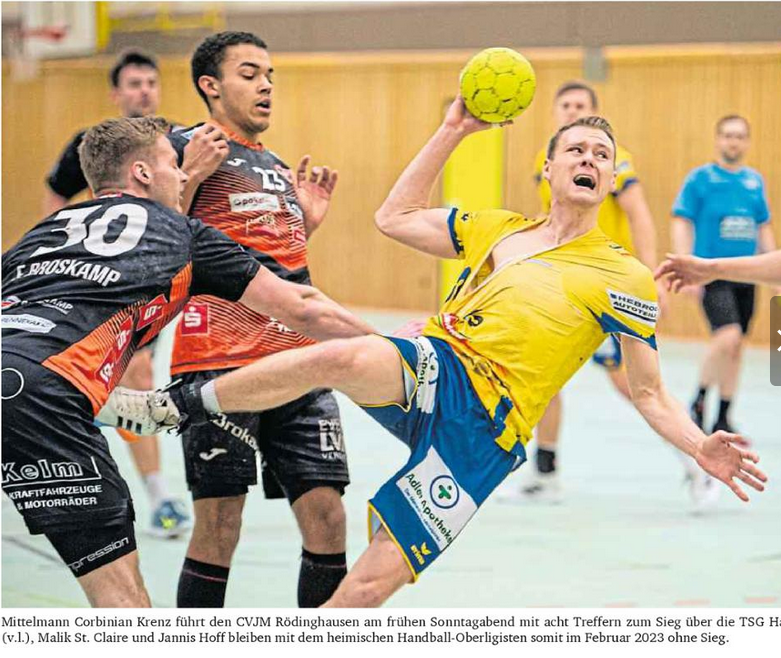 Anschnallen und gut festhalten, die TSG Harsewinkel bittet in einem Handball-Oberligaspiel zur Achterbahnfahrt. Doch nach 60 Minuten überwiegen eindeutig die Tiefs, zwei zehnminütige Hochphasen reichen am Ende beim CVJM Rödinghausen nicht zu einem Punktgewinn. Durch die 27:30 (11:14)-Niederlage bleibt die TSG im Monat Februar sieglos und weist erstmals in dieser Saison ein negatives Punktekonto auf.