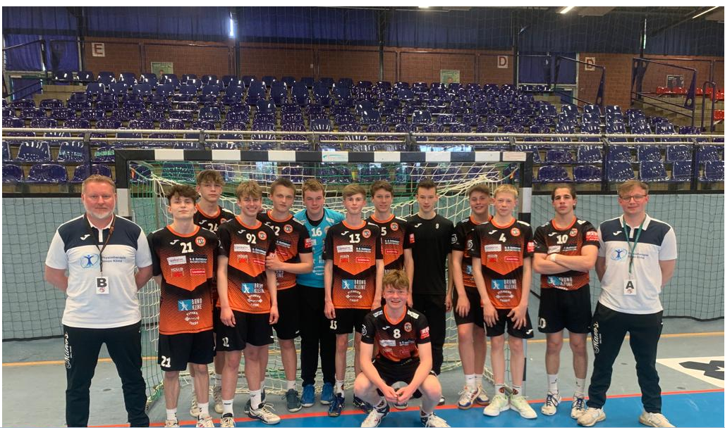 B-Jugend qualifiziert sich in Emsdetten für die Verbandsliga. Trainer Karsten Koch und Container Cedric Schadwell sind stolz auf ihre Jungs. /div>