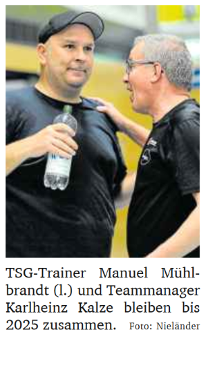 Gerade im so engen und lange anhalten Abstiegskampf sei die Mannschaft eine absolute Einheit gewesen und einige Spieler hätten sich deutlich weiter entwickelt. „Neben der Mannschaft selbst ist dies insbesondere auch ein Verdienst von Mühle, der mit extrem viel Energie und Leidenschaft die Mannschaft geführt hat“, so Kalze. „Insofern sind wir sehr froh, dass wir schon jetzt hohe Planungssicherheit auf der Trainerposition für die Zukunft haben und uns weiterentwickeln können.“ Weiter an Mühlbrandts Seite steht Co-Trainer Timo Schäfer, der ebenfalls bis zum 30. Juni 2025 bei der TSG zugesagt hat.