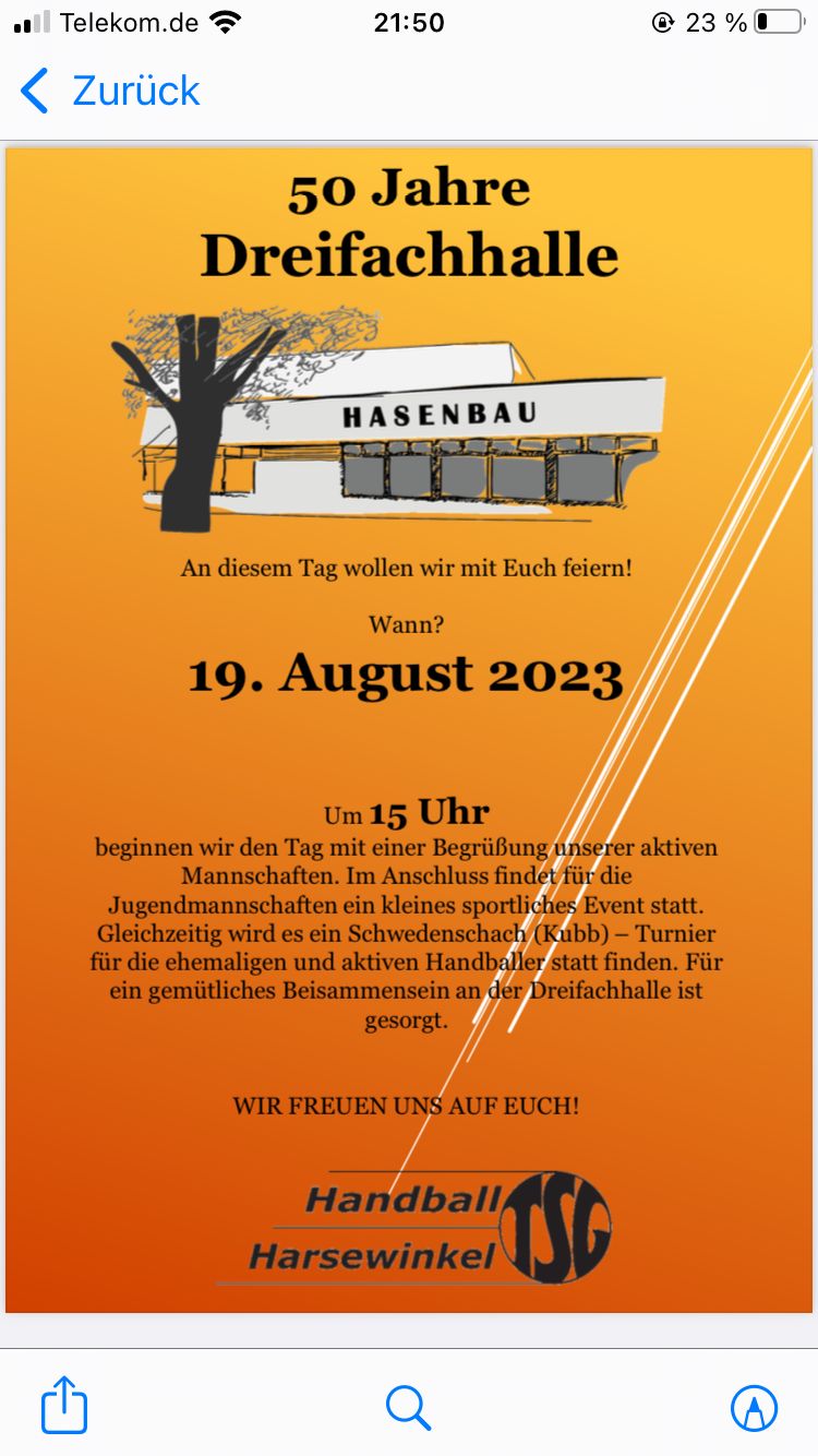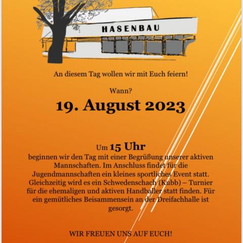 Am Samstag 19. August ab 15:00 Uhr feiert die Handballabteilung das Jubiläum.