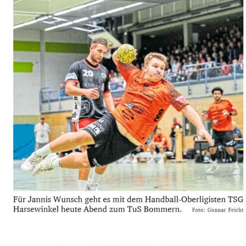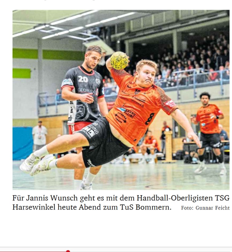 Vor einer ganz schweren Auswärtsaufgabe steht heute Abend (Anwurf ist um 20.15 Uhr) Handball-Oberligist TSG Harsewinkel. Denn Gastgeber TuS Bommern steht – punktgleich mit Eintracht Hagen II – an der Tabellenspitze. Fünf Siege und erst eine, allerdings deutliche 23:36-Niederlage bei den Mendener Wölfen stehen für das Team von Nils Krefter zu Buche. „Sie hatten schon im Vorjahr eine sehr stabile, erfahrene und im Verbund sehr stark verteidigende Mannschaft“, weiß TSGTrainer Manuel Mühlbrandt.