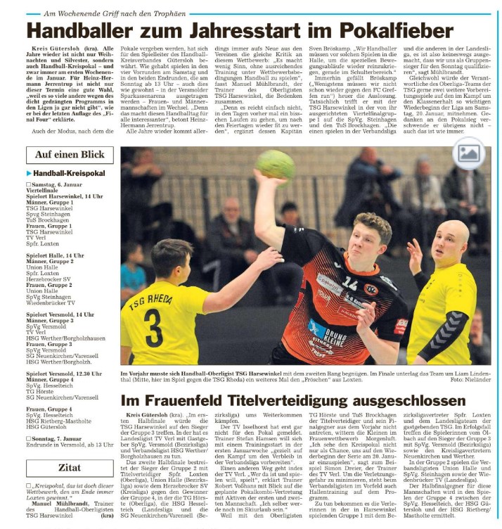 Die Glocke schaut auf den Pokal am Wochenende
