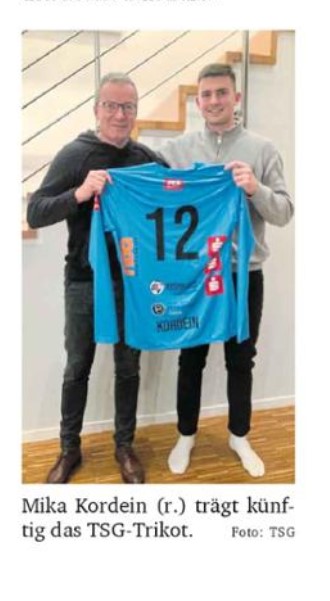 Der 19-jährige Kordein wird in der Saison 2024/25 gemeinsam mit Maik Schröder das Torhütergespann bei der TSG Harsewinkel bilden. Felix Hendrich, der als Lehrer in Halle arbeitet, tritt aus familiärem Gründen kürzer und wird in Zukunft nur noch als Feldspieler für die 3. Mannschaft der TSG auflaufen.