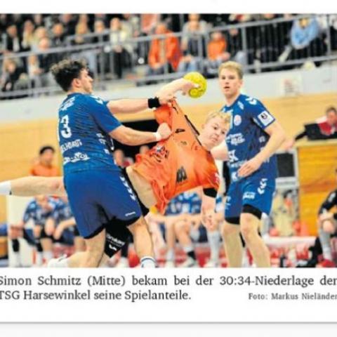 Handball: Oberligist TSG Harsewinkel unterliegt Drittligist aus Bielefeld mit 30:34.