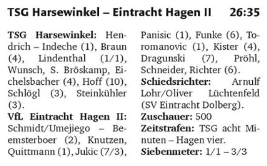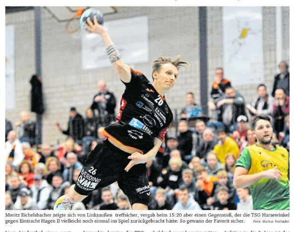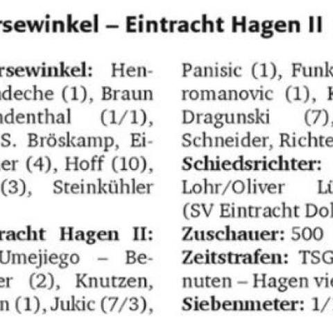 Die Blicke von der Bank der TSG Harsewinkel wanderten vor dem Anpfiff sorgenvoll zwischen der eigenen Mannschaft und dem Gegner. Mit Felix Hendrich stand dem heimischen Handball-Oberligisten nur ein Torwart zur Verfügung, da Maik Schröder (Fieber) kurzfristig passen musste. Der VfL Eintracht Hagen II fuhr personell hingegen schwere Geschütze auf und hatte sich mit vier Spielern aus dem Zweitligakader verstärkt.