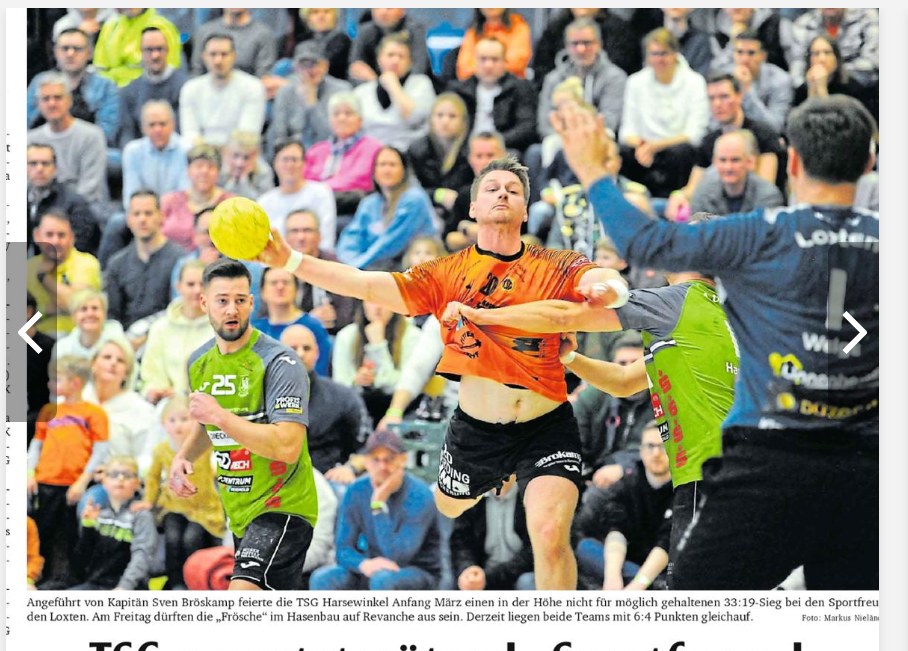 In den bisherigen fünf Saisonspielen hat es die TSG noch nicht geschafft, ihr Leistungsvermögen über 60 Minuten auf die Platte zu bringen. Am Freitag wird sie es wohl tun müssen, um gegen die punktgleichen „Frösche“ (beide Teams stehen bei 6:4 Zählern) bestehen zu können. Denn im Gegensatz zum eher leichten Harsewinkeler Auftaktprogramm haben die Loxtener mit Gladbeck, GWD Minden II, ASV Hamm II und LIT II schon vier Spitzenmannschaften abgearbeitet – und nur das Spiel gegen GWD ging mit einem Tor (29:30) verloren. „Sie könnten sogar noch besser dastehen. Denn bei den Unentschieden in Gladbeck und gegen LIT waren auch Siege möglich“, so Mühlbrandt, den die Stärke der „Frösche“ indes keineswegs überrascht.