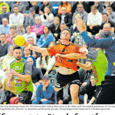 „In den vergangenen Jahren gehörte Loxten immer zur Spitzengruppe. Die etwas schwächere letzte Saison haben sie mit externen Verstärkungen korrigiert“, nennt „Mühle“ Jan Hübner (kam aus Rödinghausen) und vor allem den vom Drittligisten TSG A-H Bielefeld verpflichteten Kreisläufer Jannis Louis. „Er hebt das Qualitätslevel noch einmal an.“ Zudem erwartet der TSG-Trainer die Gäste maximal motiviert. Denn der Stachel der Demütigung aus dem letzten Aufeinandertreffen Anfang März, als der TSG beim 33:19 in Loxten der erste Sieg überhaupt gegen die „Frösche“ gelang, sitzt bei den Sportfreunden sehr tief.
