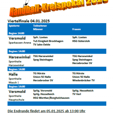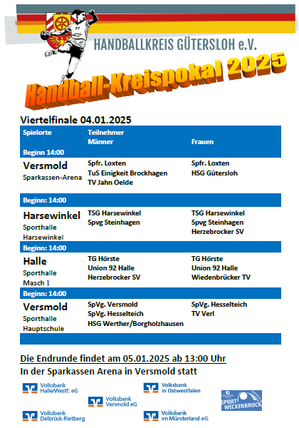 Am ersten Wochenende eines Neuen Jahres findet im Handballkreis Gütersloh der Kreispokal Männer und Frauen statt.